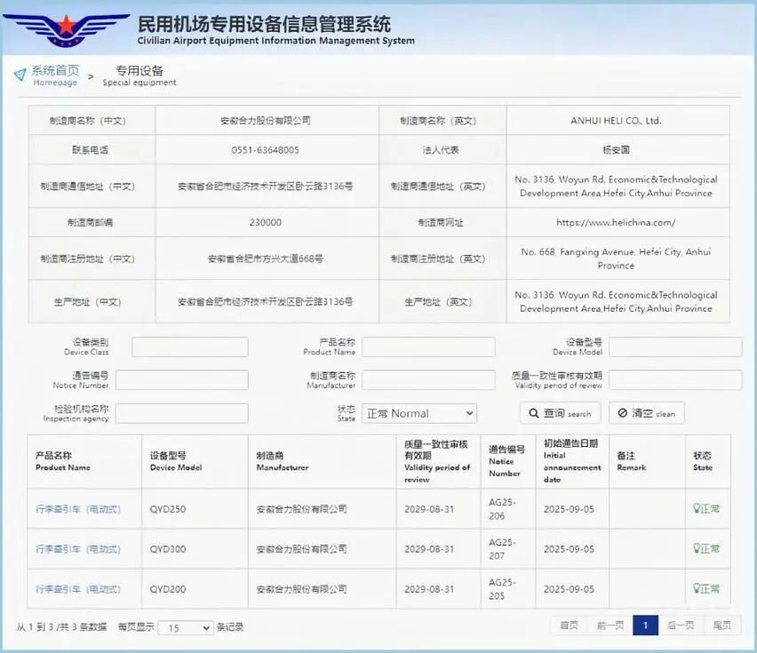 近日,合力再传捷报!经中国民用航空局(CAAC)严格审核,合力成功获得民用机场专用设备制造资质,同步完成首批G2系列20-30吨锂电牵引车的民用机场专用设备通告认证。
