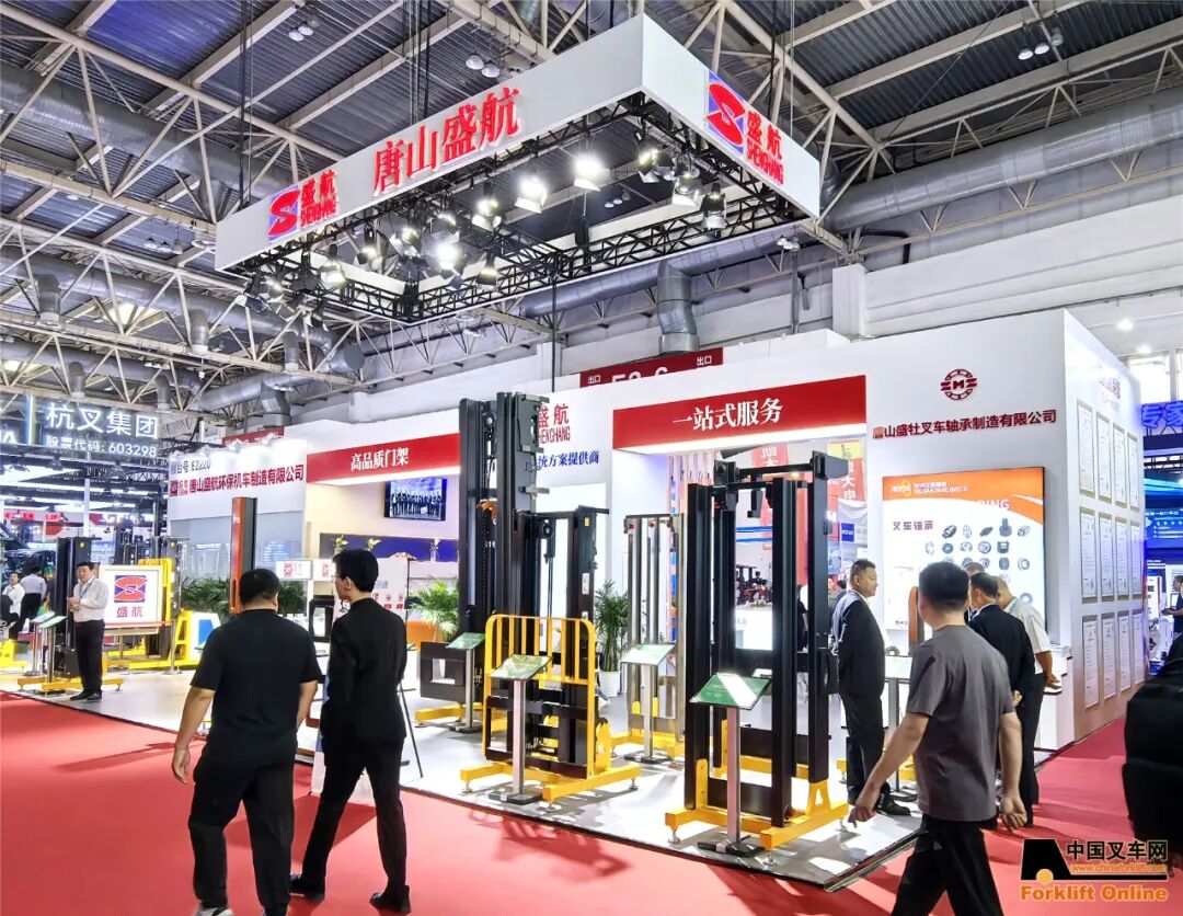 唐山盛航展示多级门架总成与热轧式叉腿等结构件产品。