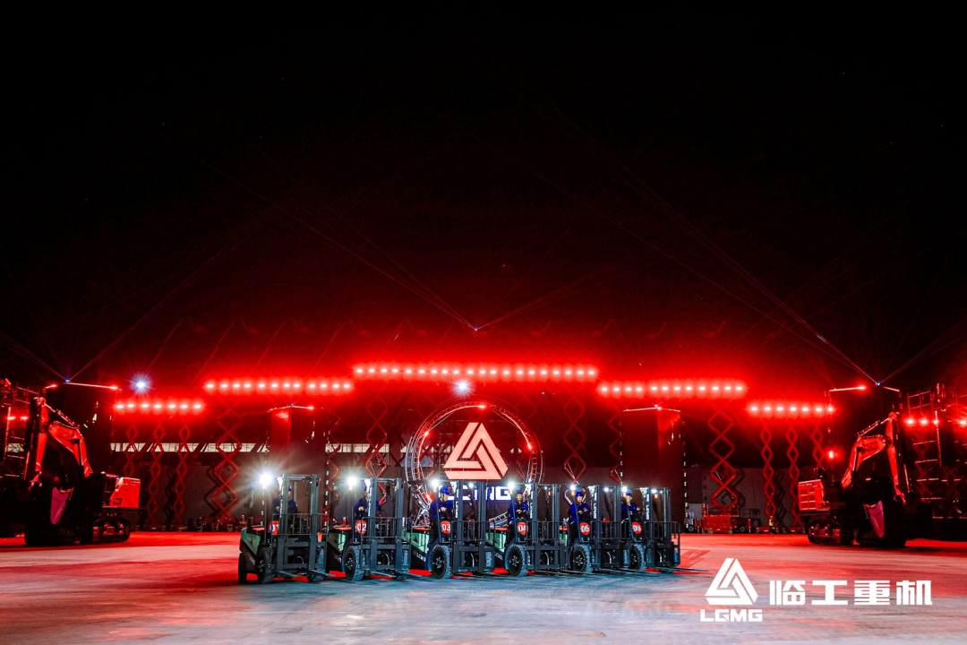 现场还举行了临工重机&华为无人驾驶测试基建揭牌仪式,并进行了演示展示。无人驾驶矿车在复杂环境下完成自主路径规划、障碍识别和稳定作业,展现了领先的技术水平。晚间的设备表演环节融合了技术与艺术,无人驾驶矿车、电动平衡重叉车、伸缩臂叉车以及挖掘机与高空作业机械同台亮相,带来一场极具未来感的“机甲舞”表演。