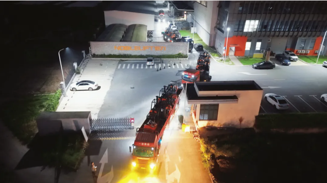 在装车过程中,现场工作人员对每一台设备逐一开展外观检查与性能调试,确保所有叉车均达到最优运行状态。随着最后一台叉车完成固定,运输车队缓缓驶出,车灯与沿途路灯交相辉映,为这场跨越区域的交付之旅增添温暖底色。