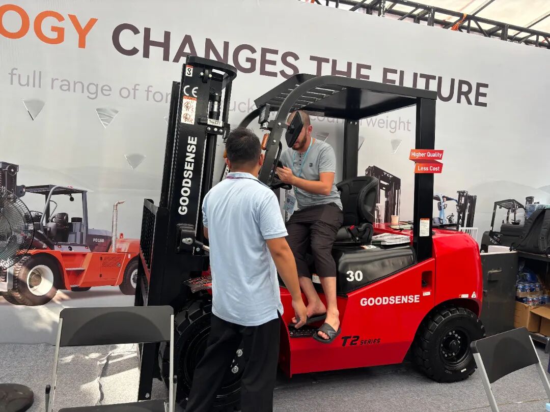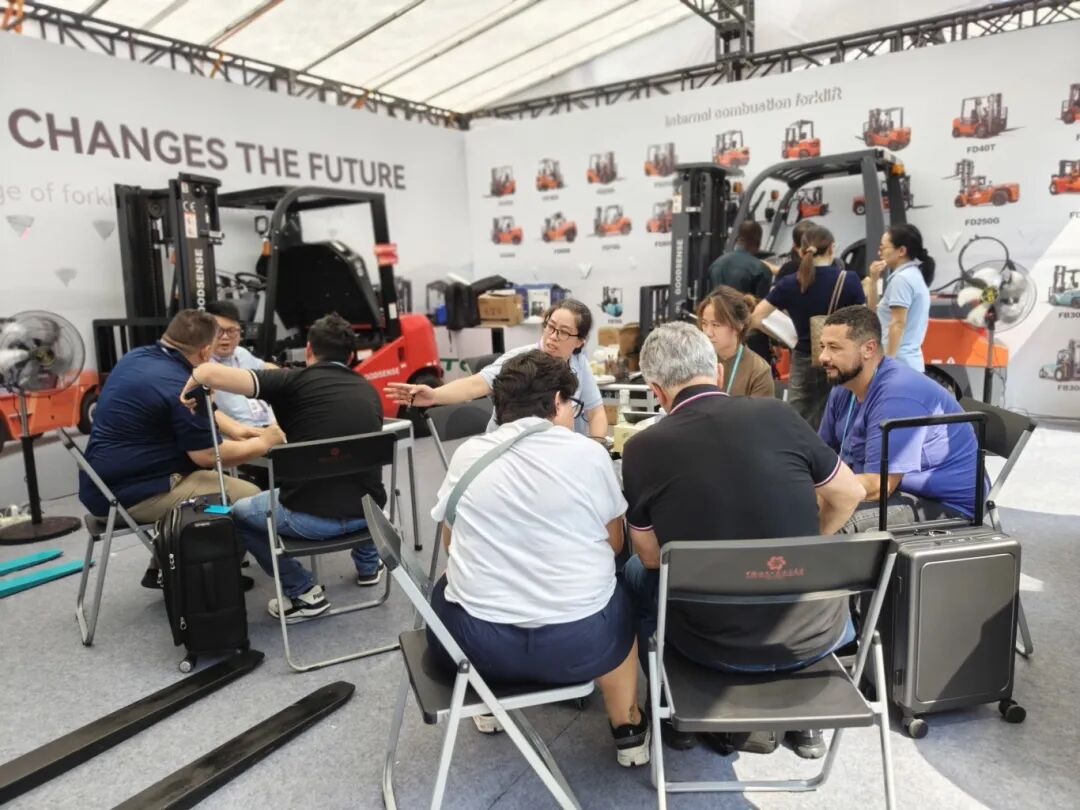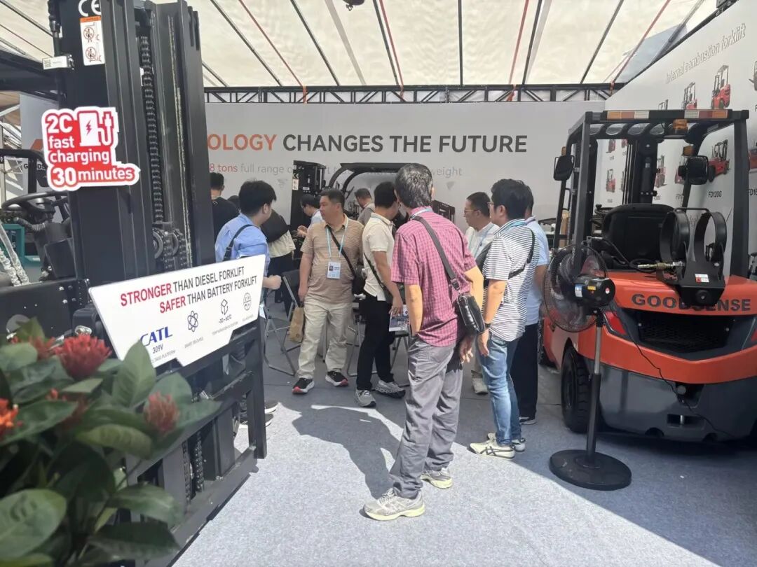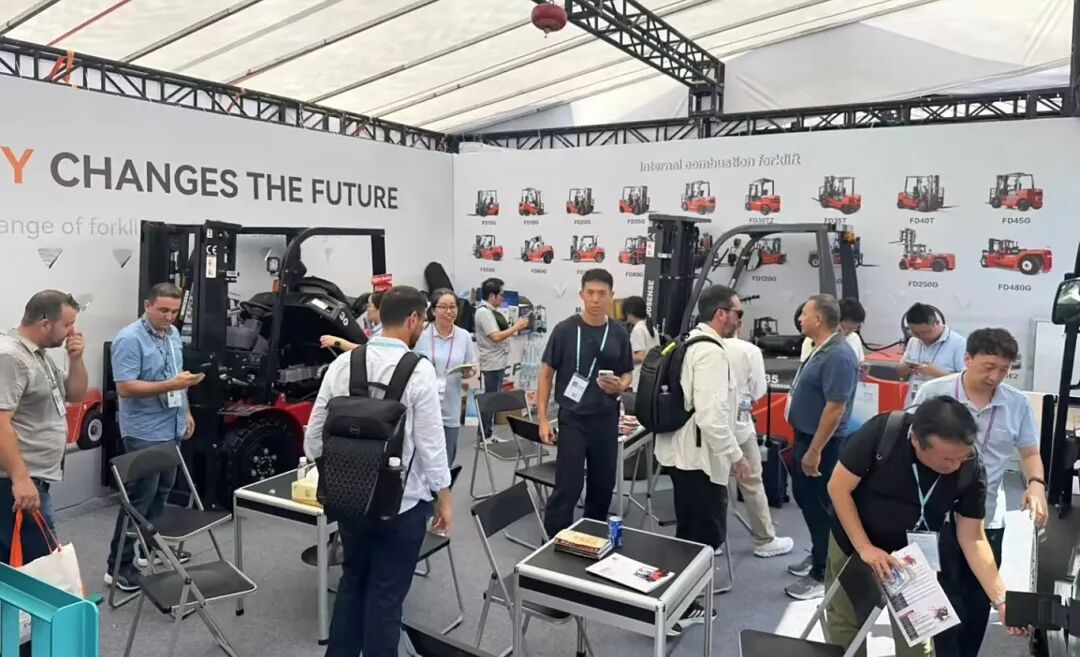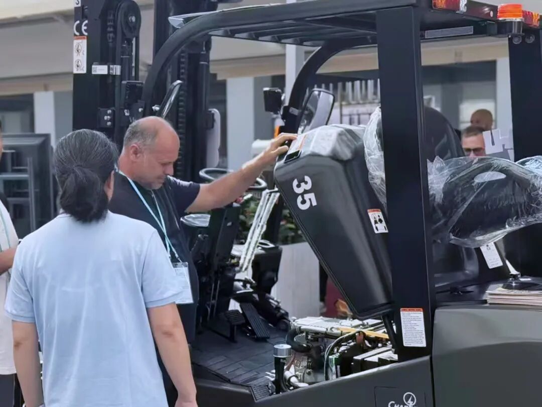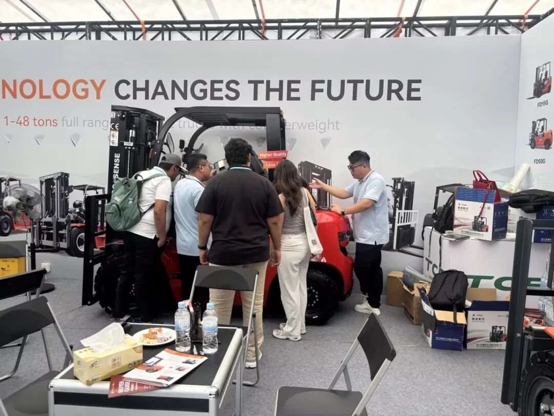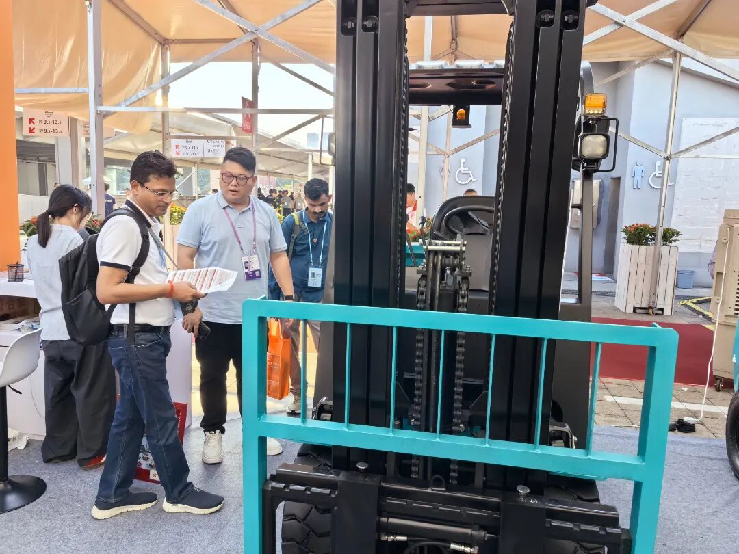 TCF全新推出的明星产品“军创荣耀高压锂电叉车”以其强劲的动力性能、智能的安全设计、便捷灵活的操作体验成为现场的焦点,吸引了众多客户观摩试驾和采购咨询。