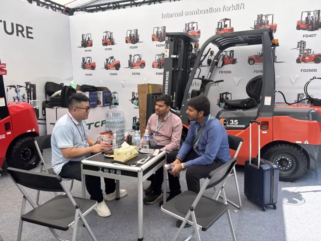 本届广交会以“向新”“向智”“向绿”为鲜明特点,作为彰显中国制造风采、推动国际商贸往来的重要窗口,汇聚了全球各地的商业伙伴。 TCF携军创荣耀高压锂电叉车、C系列短轴距叉车、T2内燃叉车、LPG叉车以及TCF智能换电解决方案等多款创新产品亮相现场,以卓越的技术实力和优异的性能表现,赢得了海内外客户的广泛关注。