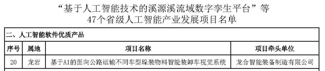 龙合“基于AI的面向公路运输不同车型垛装物料智能装卸车视觉系统”入选省级人工智能产业发展项目