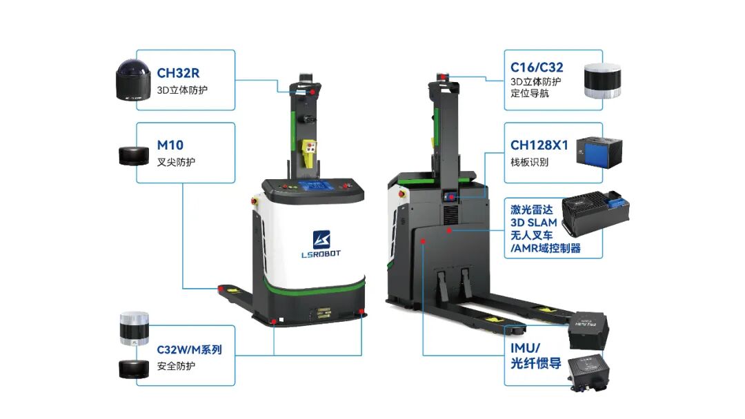 搭载128线高精度混合固态激光雷达,结合AI算法与深度学习模型,可在复杂环境中精准识别栈板与货物位置。