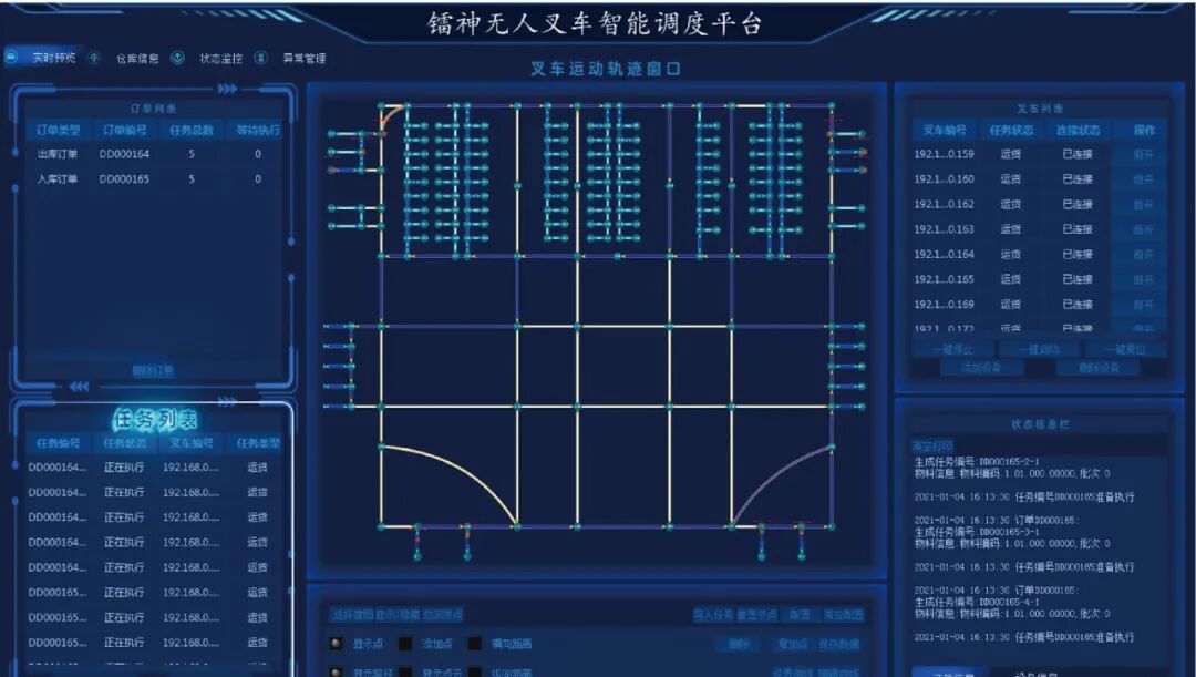镭神智能自主研发的FMS多机调度系统可与WCS系统无缝对接,实时动态优化路径规划。