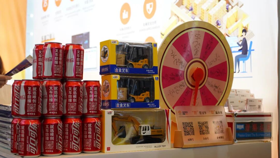 我们还为来到展位现场的客户朋友准备了欢乐的转盘抽奖活动,只要关注唯创安全企宣视频号,点赞/分享视频,就可参与抽奖。奖品有特别定制的《每日精进》笔记本、合金叉车/挖掘机模型、“叉车防撞,就选唯创”的定制可乐、幸运小零食等。