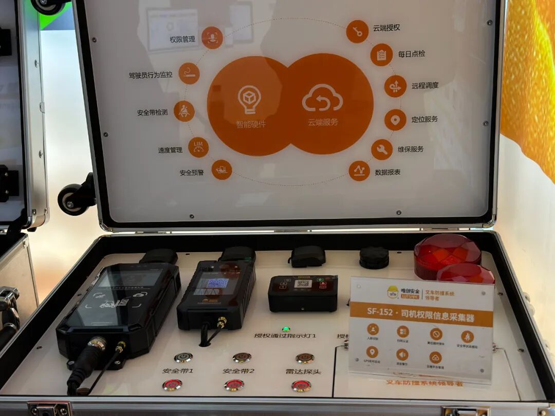 同时展出的还有 AI影像防撞预警系统、SF-106雷达感应区域预警灯、SF-110智慧叉车管理系统、SF-152人脸识别司机权限采集器等明星产品。