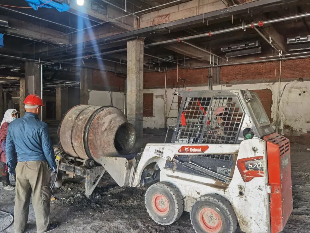 拆除之后,即是重建。山猫滑移装载机在建设阶段同样表现出色,从基础物料搬运到混凝土制备与泵送,几乎无所不能。