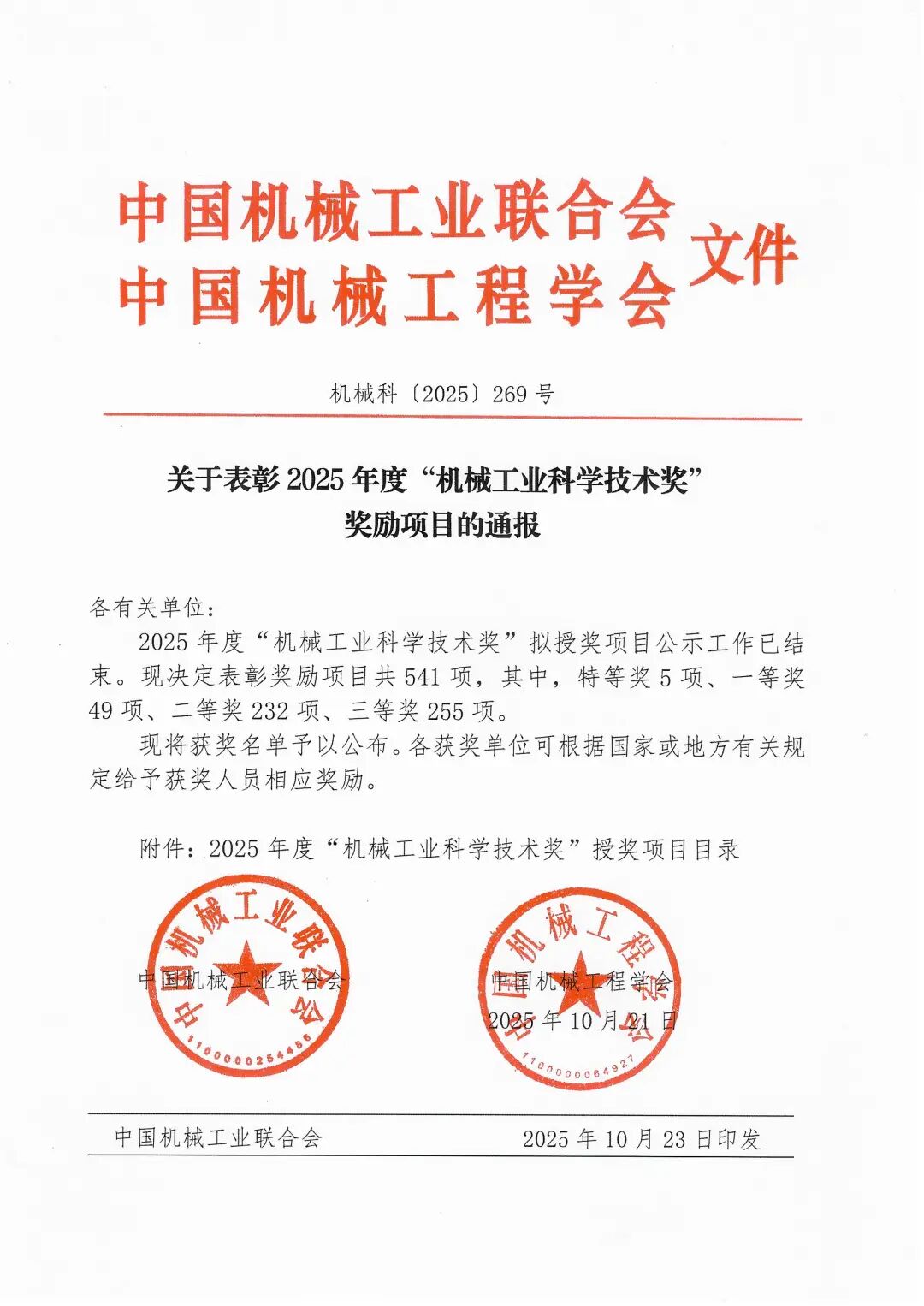 日前,在中国机械工业联合会和中国机械工程学会联合公布了《关于表彰2025年度“机械工业科学技术奖”奖励项目的通报》中,由华南重工与华侨大学等单位联合提报,华南重工总经理郭俊锋参与的“新能源重型移动机械电液动力总成与能量回收关键技术及产业化”研发项目,荣获2025年度“机械工业科学技术奖”科技进步类一等奖。