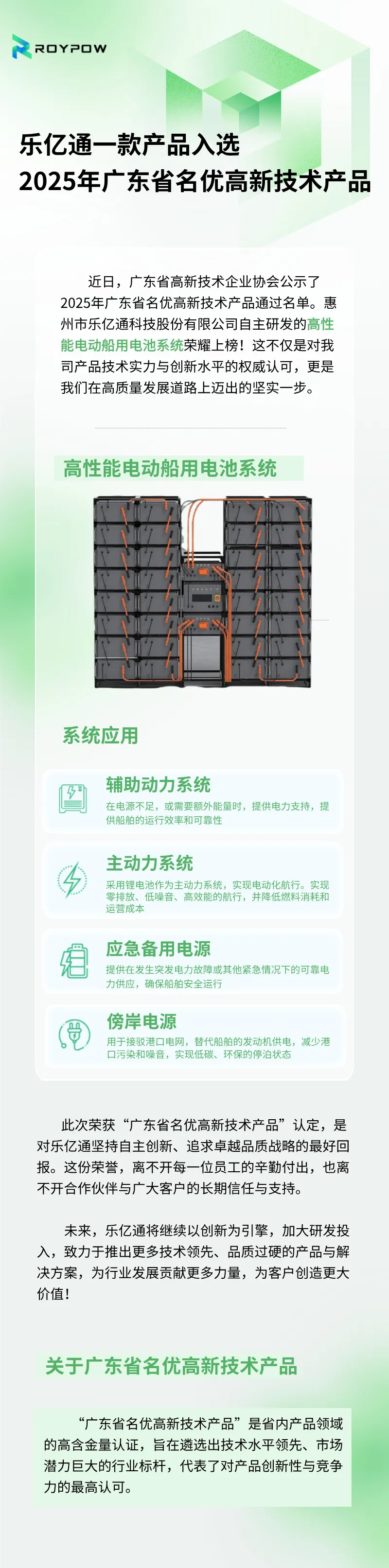 热烈祝贺乐亿通一款产品成功入选2025年广东省名优高新技术产品!
