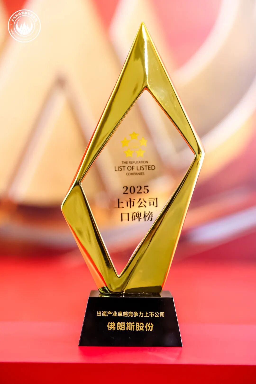 随着年会的成功举办,“第十五届上市公司口碑榜”也随即揭晓,佛朗斯股份凭借开拓海外市场、构建国际竞争力、实现跨国经营方面成效显著,成功斩获“出海产业卓越竞争力上市公司”奖。