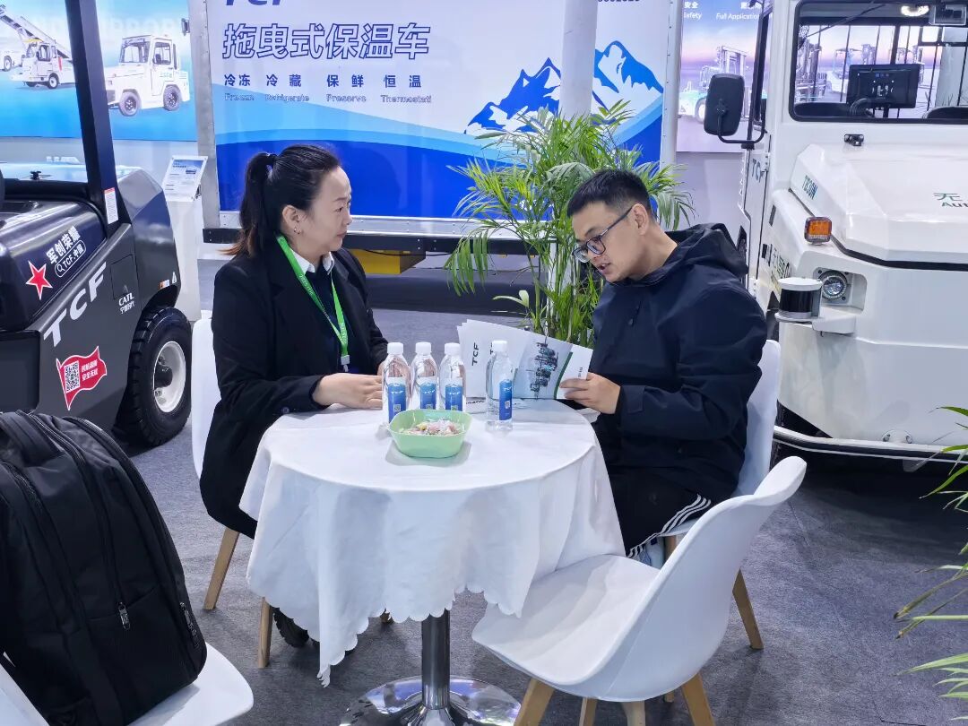 在“双碳”目标与数字化转型的双重驱动下,交通物流行业对高效、环保、智能化的解决方案需求日益增长,为期3天的展会,TCF集中展示了无人驾驶牵引车、智能换电解决方案、军创荣耀高压锂电叉车等一系列创新成果,全方位呈现了公司在绿色智慧物流装备领域的应用和突破。