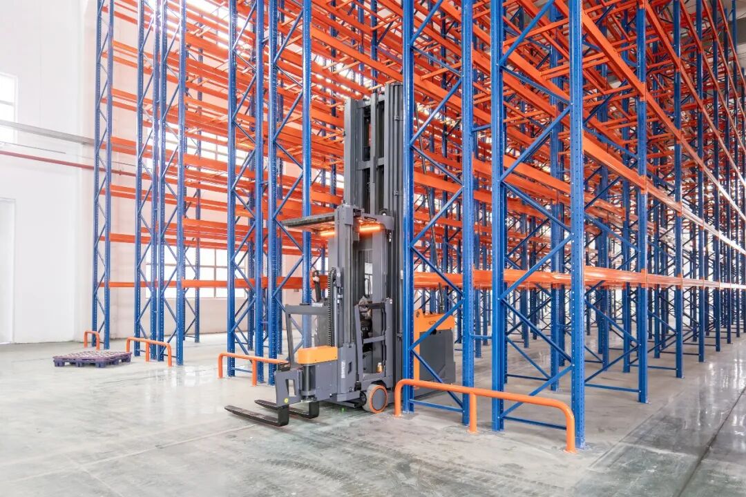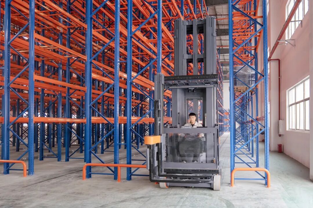 本次交付的人上型三向叉车最大起升高度11.5m,最大载重1.6吨,在货架与叉车的完美配合下,存储库位量实现质的飞跃,为企业未来几年的业务扩张预留了弹性的存储空间。