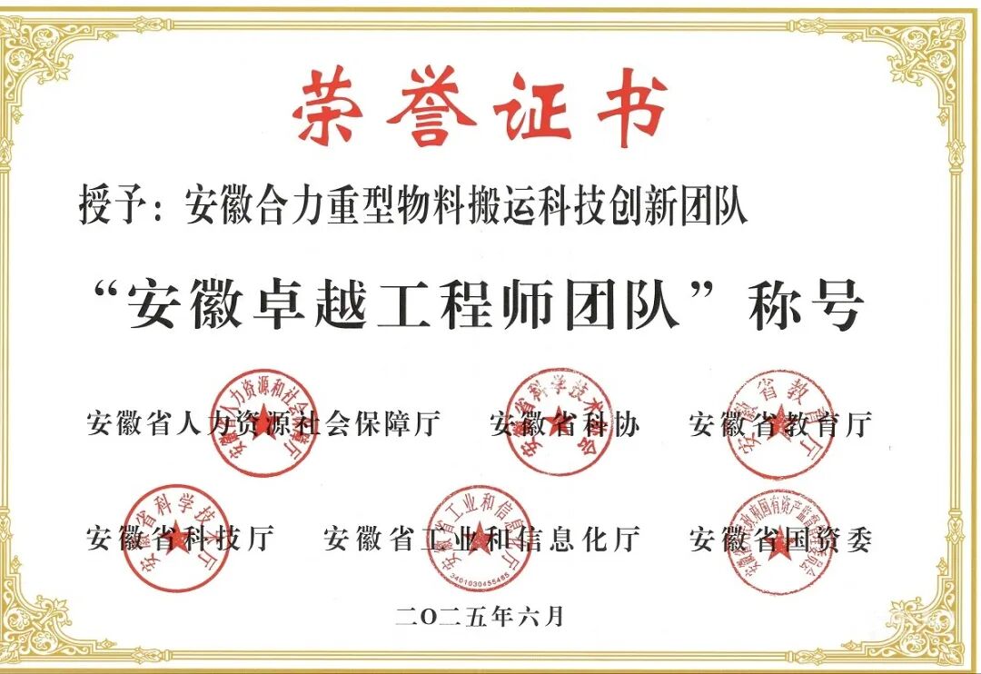 - 实力认证!安徽合力重型物料搬运科技创新团队荣获"安徽卓越工程师团队"称号