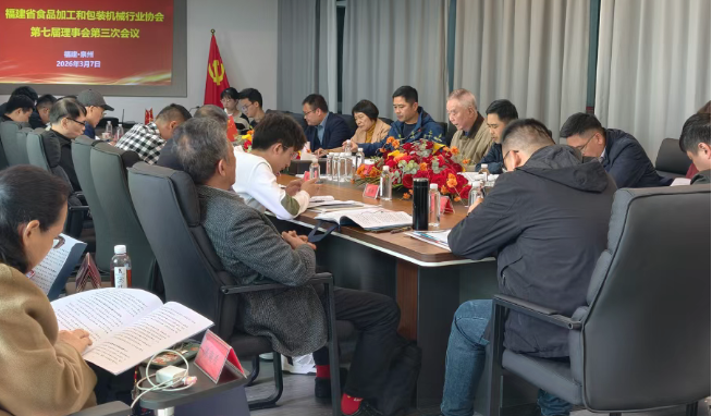2026 年 3 月 7 日,福建省食品加工和包装机械行业协会第七届理事会第三次会议在福建科盛智能物流装备有限公司(简称:科盛)顺利举办。科盛董事长杜淑媛、总经理曾国耀出席会议,对协会理事会、监事会成员及各会员企业代表的莅临表示热烈欢迎,与一众嘉宾齐聚一堂,复盘 2025 年行业发展成果,共商 2026 年行业高质量发展新路径,为福建省食品加工和包装机械行业高端化、智能化、绿色化发展凝聚共识、汇聚力量。