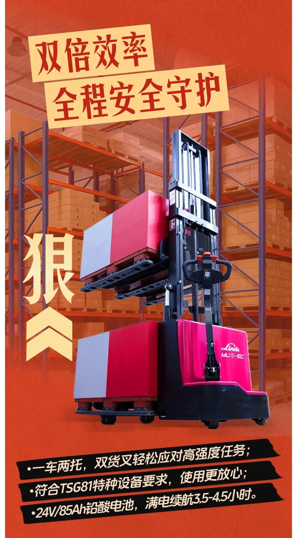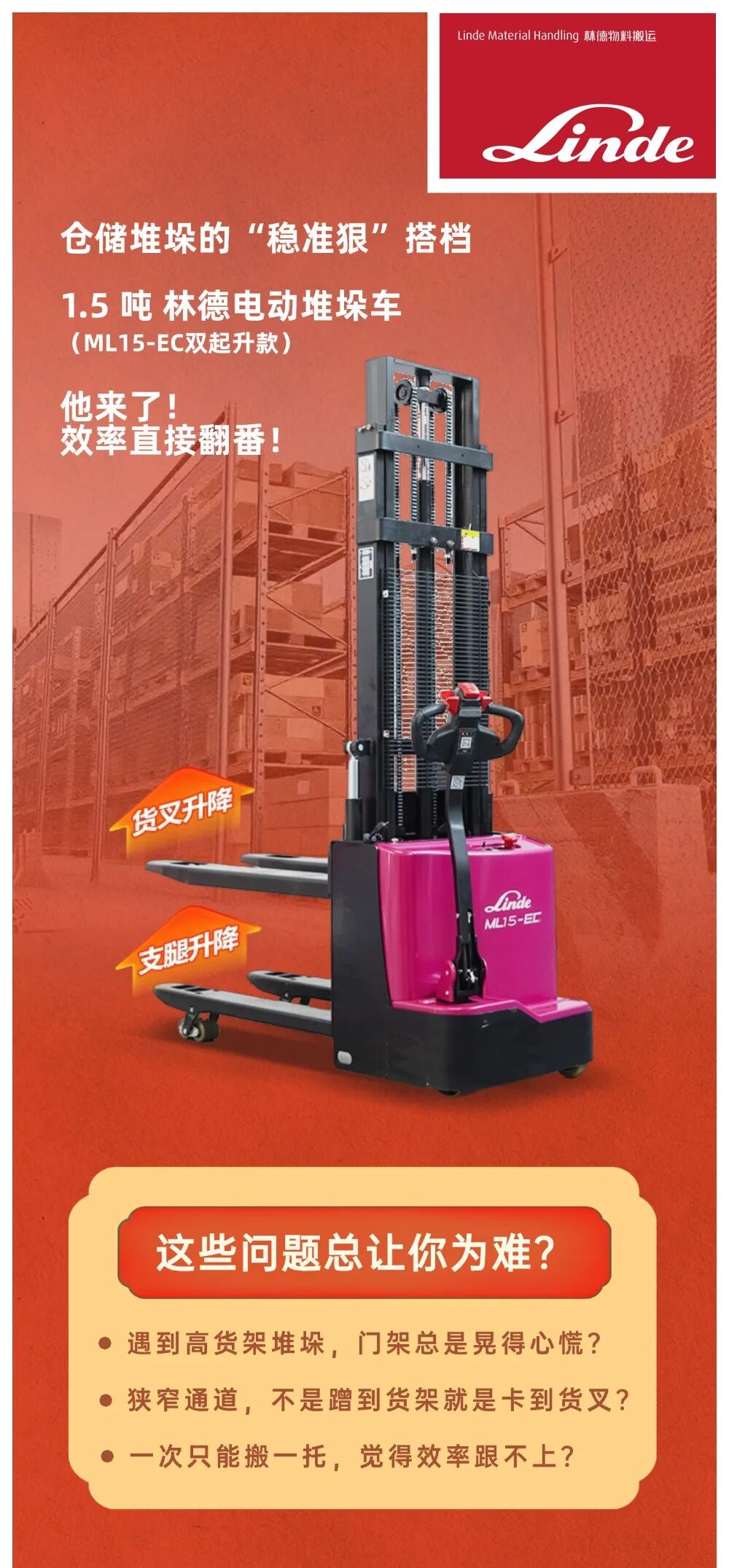 林德傲龙ML15-EC双起升 | 仓储堆垛的“稳准狠”搭档