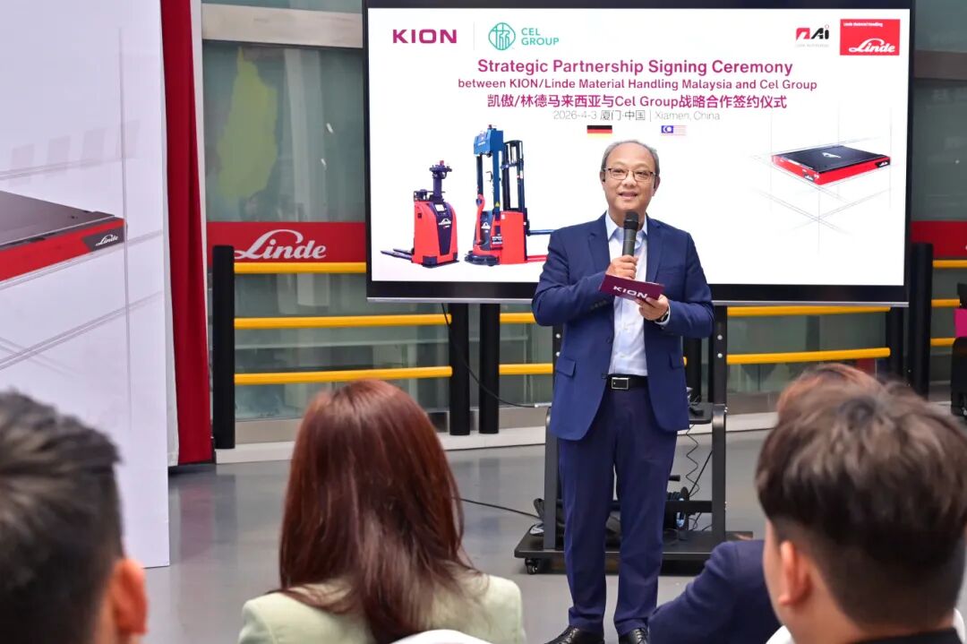 2026年4月3日,凯傲集团与Cel Group在林德厦门工厂隆重举行了战略合作签约仪式。双方将在自动化物流领域展开深入合作,进一步强化战略伙伴关系,携手开启崭新征程。Cel集团创始与主席Lee Chong Keong、凯傲集团亚太区战略及产品管理高级副总裁、中国区商务高级副总裁谢德安、凯傲南亚区董事总经理Tee Seng Chuan及双方管理层共同出席本次活动,见证这一重要时刻。
