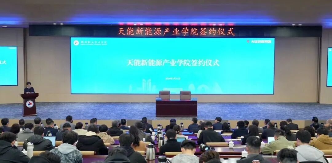由湖州职业技术学院和天能控股集团共建的天能新能源产业学院正式成立。校企携手,聚力培育新质生产力,打造高水平产教融合平台,为新能源产业高质量发展注入新动能。
