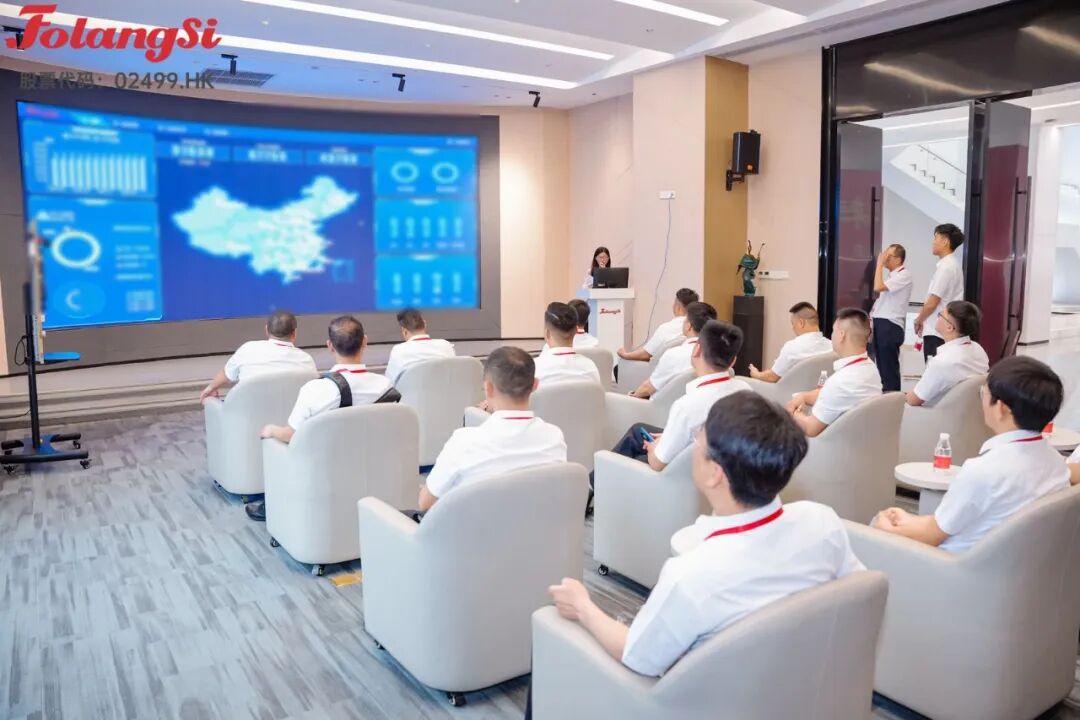 开班首日,全国销售精英先后参观了公司总部企业文化馆、车联网监控中心、智能仓库及开放式办公区域。在车联网监控中心,大家深入了解了公司自主研发的智慧资产运营管理系统,该系统集物联网、大数据、人工智能与可穿戴设备于一体,充分展现了佛朗斯在数字化运营、技术创新方面的领先实力。