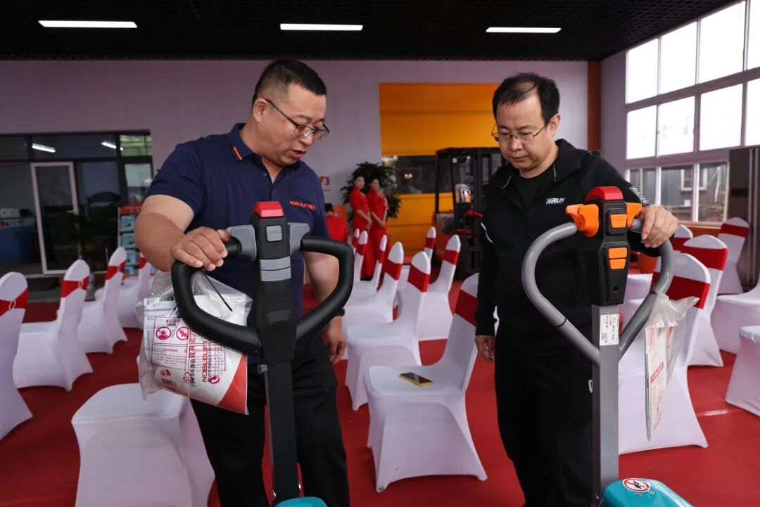 现场开启产品体验环节,多款诺力主力叉车、智能仓储设备整齐陈列,邀请到场客户近距离观摩、实地试乘试驾,直观感受诺力产品的核心优势,专业技术团队现场解答,全方位讲解产品性能与行业定制方案。