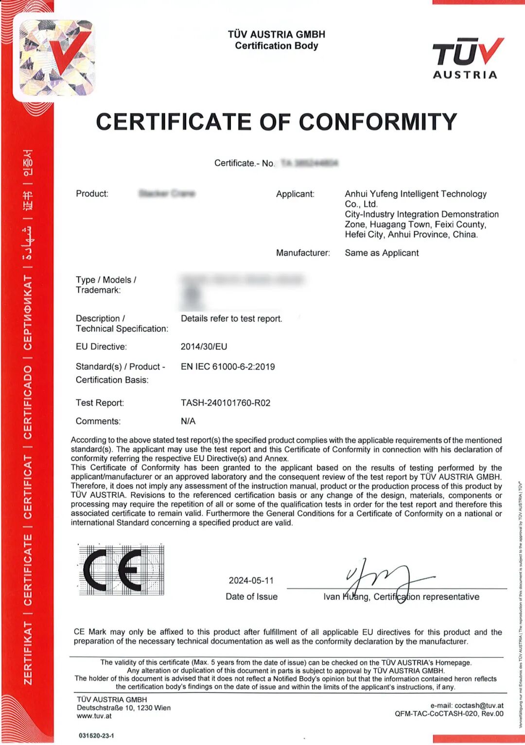 目前,系列AGV及仓储机器人已通过CE、UL、TÜV、SGS、ECM等国际认证,不仅满足合规要求,更形成可复制的全球准入能力,为规模化出海保驾护航。