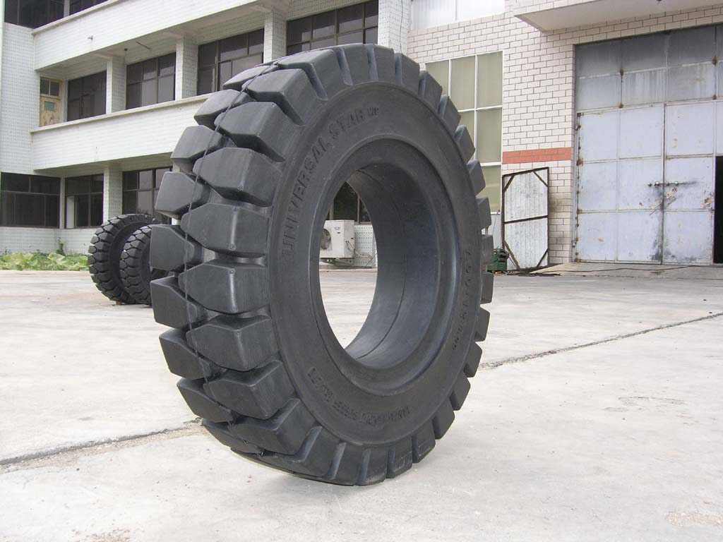 实心轮胎是一种用于低速,高负载车辆运行条件下的工业轮胎,其安全性、耐久性、经济性均明显优于充气轮胎,广泛用于各种工业车辆、矿山产运车辆、军事车辆和港口机场的拖挂车辆。我公司产品符合国家标准、美国TRA标准、欧洲ETRTO标准和日本JATMA标准;并具有高的耐磨性、低滚动阻力、使用寿命长、免维护和耐刺扎等优点。产品种类包括充气轮胎轮辋实心轮胎、钢圈压配式实心轮胎、环保型实心轮胎以及其他各类客户需要的非标准实心轮胎。产品规格主要有5.00-8/3.00D,6.00-9/4.00E,6.50-10/5.00F,7.00-12/5.00S,18*7-8/4.33R,28*9-15/7.00等。
