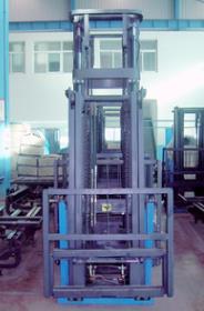 2)门架材料采用一次成型轧制的14-16#高强度叉车门架专用型钢和高强度16Mn板焊接而成。滑架上下横梁采用专利技术生产的高强度20MnSi材料,比一般门架前悬缩短20mm。