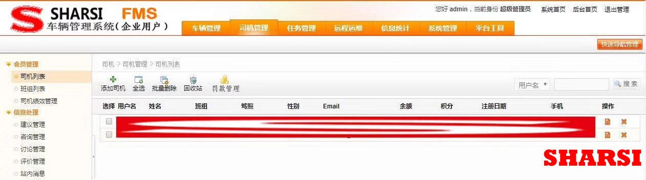 本功能模块包括了司机的基本信息,绩效积分等,双击司机条目,可以查询更详细的相关资料。