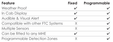 该系统具有可调节的检测区域,该区域分为三个级别,可以从源头检测10cm至30m。目标光束方向图可最大程度减少错误警告。该系统具有四个传感器,使其能够检测盲点中的物体。当检测到物体(例如速度限制和车队管理)时,可以将该系统配置为触发其他FTC Ltd安全系统。