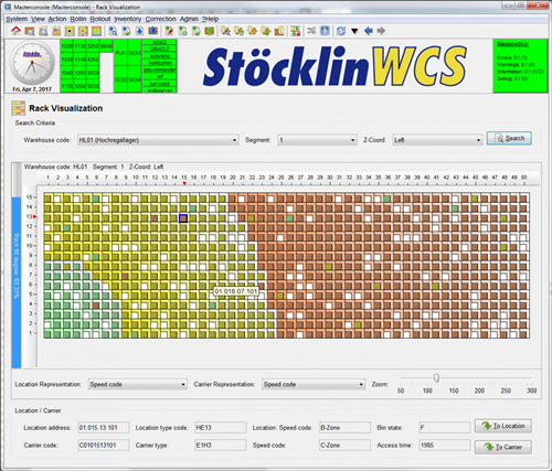 StöcklinWCS还包括用于存储架的可视化功能。这使得监视每个单独的存储托架的分配变得容易。