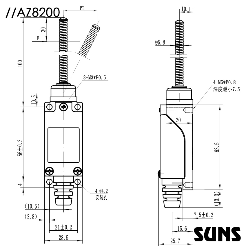 SUNS美国三实万向盘簧式头部AZ-8200升降平台限位开关技术参数