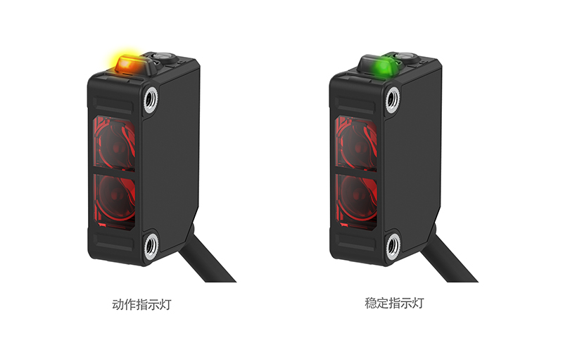 用户可以通过动作指示灯(黄色LED)和稳定指示灯(绿色LED)轻松确认传感器的状态。