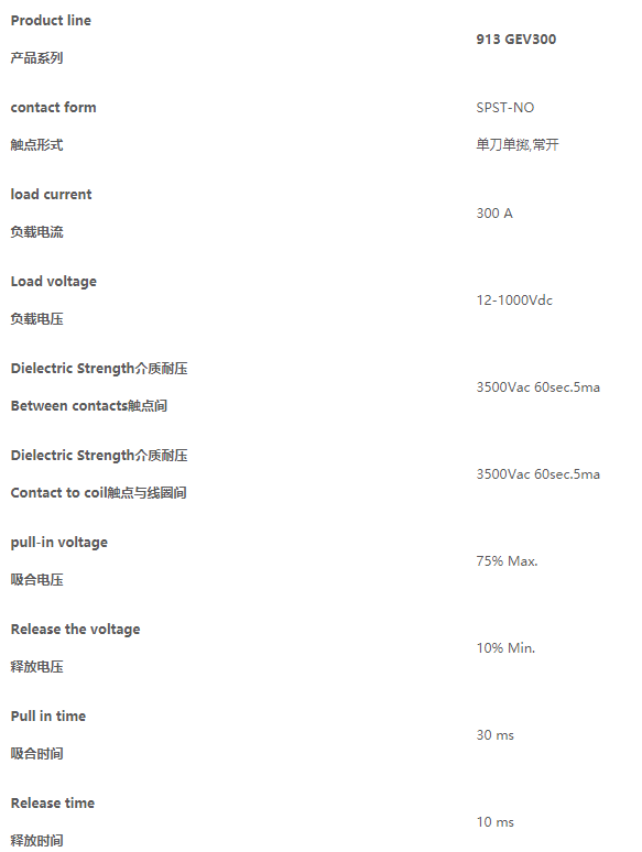 • 触点室内充有惰性气体,磁吹灭弧,可用于 1000VDC 负载隔离