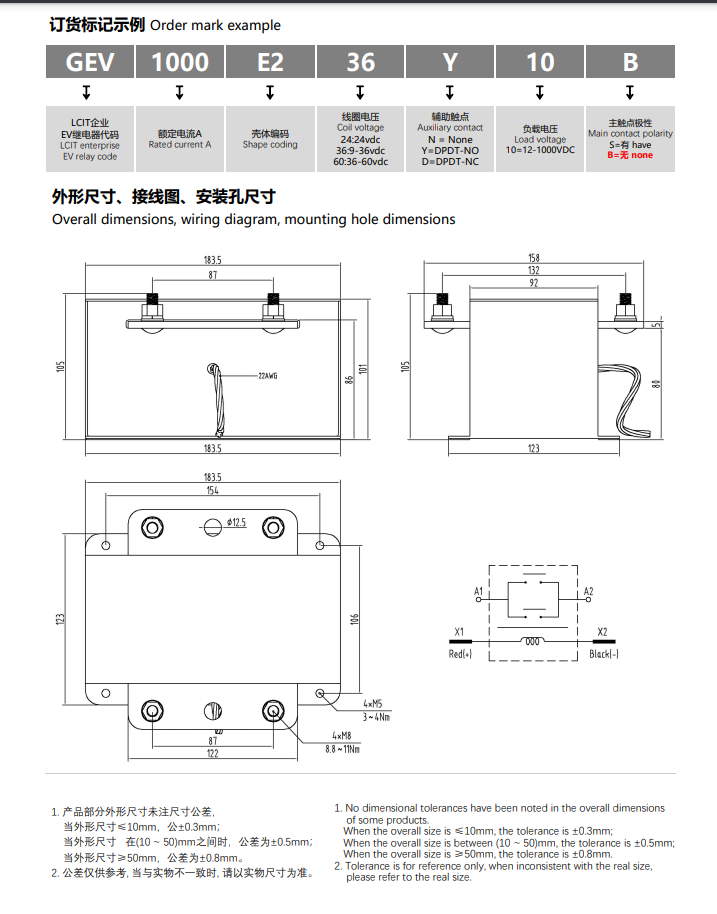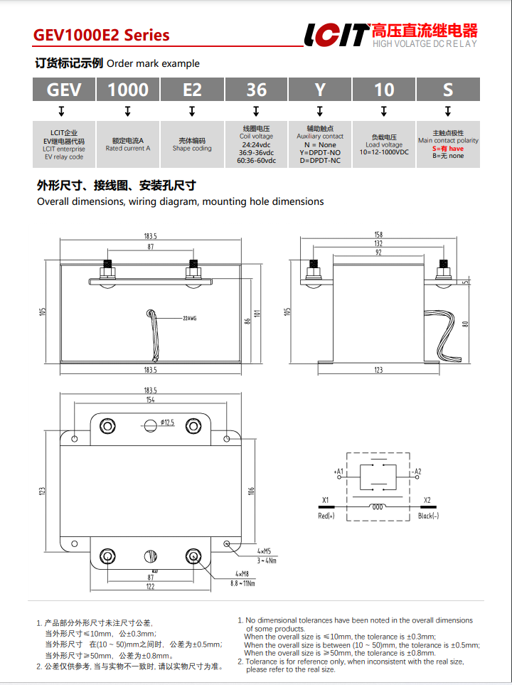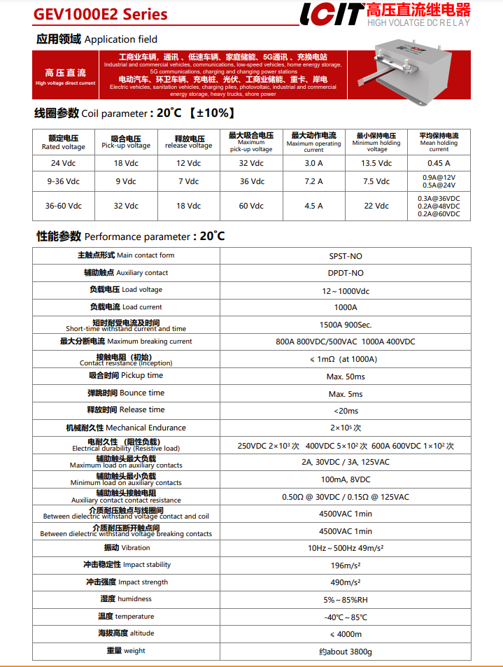 • 高压直流接触器继电器GEV1000E236Y10S