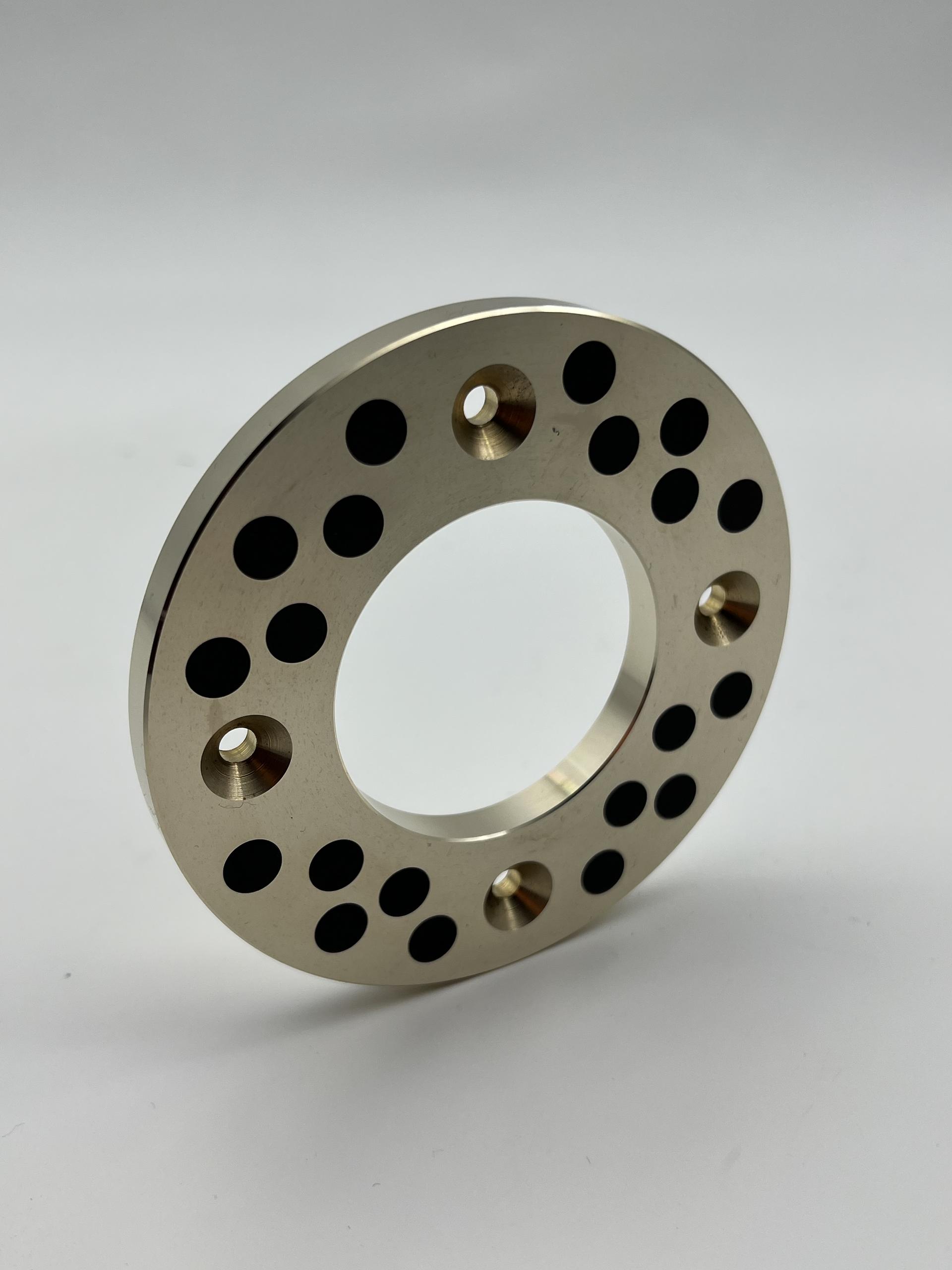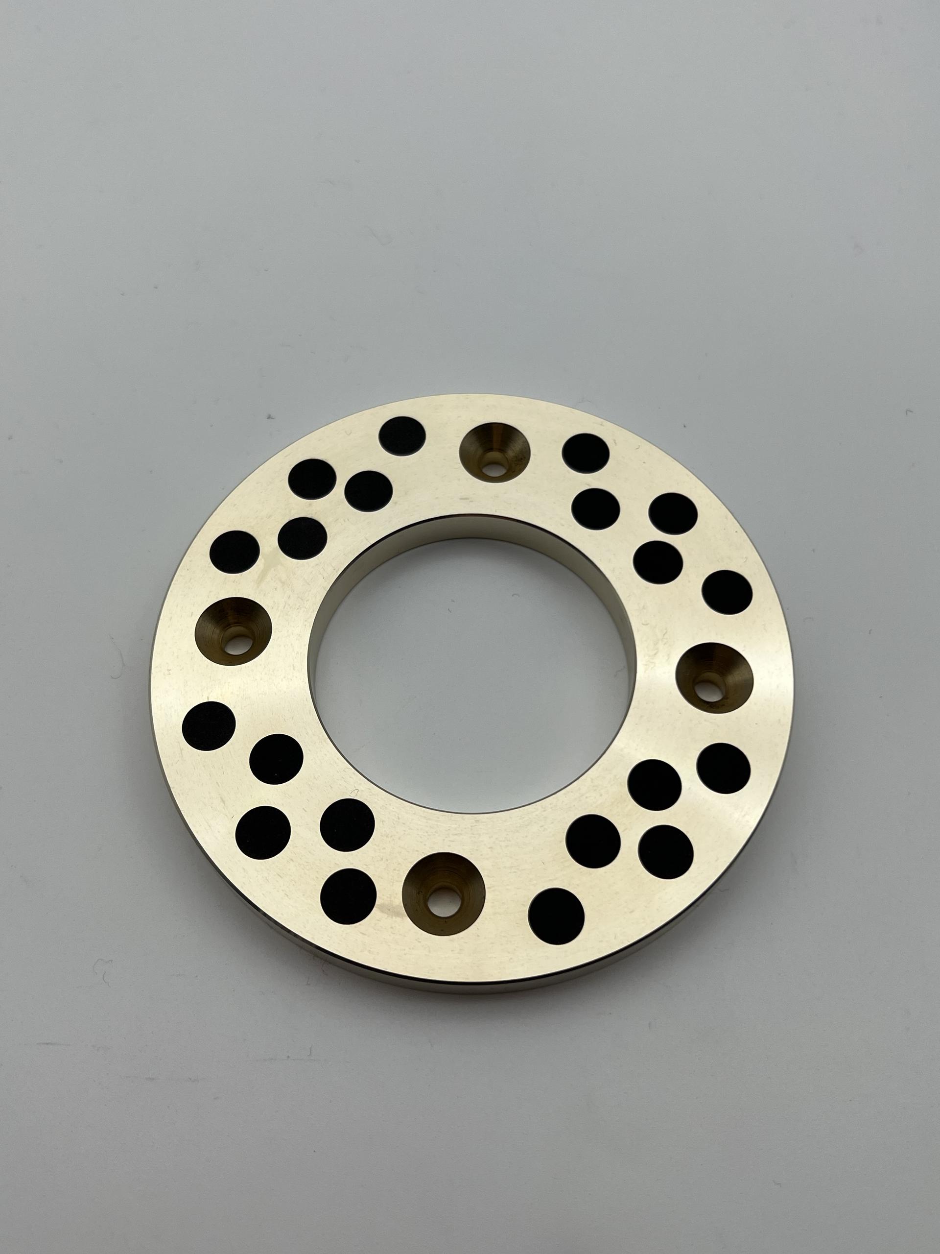 JTW石墨垫片是在高力黄铜或其他优质金属基体上,镶嵌石墨或二硫化钼(MoS2)等固体润滑剂而制成的一种高性能固体润滑产品。它突破了传统轴承依赖油膜润滑的局限性,通过摩擦热使固体润滑剂与轴摩擦,形成油、粉末并存的优异润滑条件,从而保护轴不磨损,并使固体润滑特性得以永恒保持。