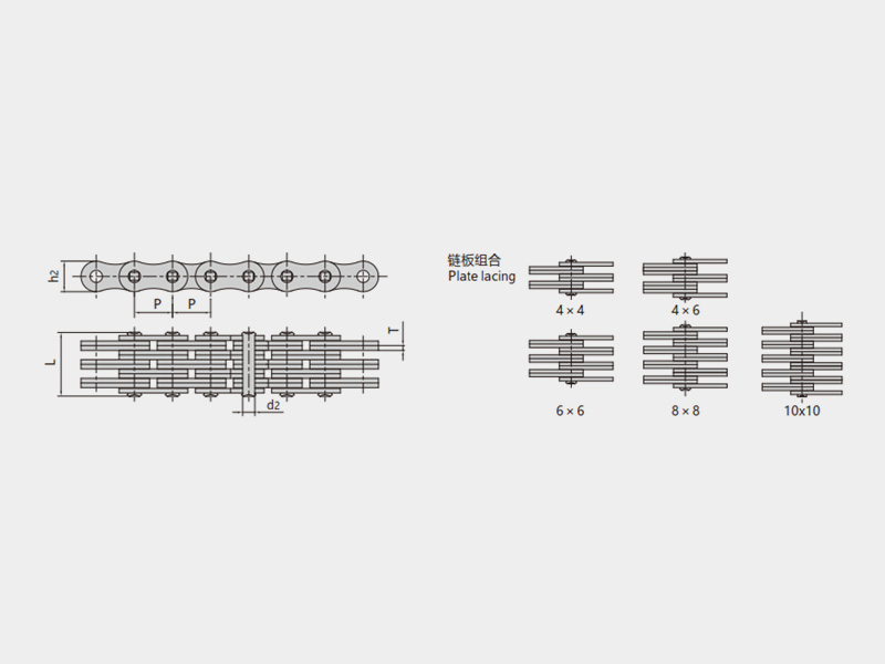 ● 堆高机用板式链是由标准板式链派生出来的一种特殊用途的板式链,主要用于港口集装箱空箱堆高机,能满足承载重量大、提升高度高等特点;