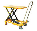 在使用时将其承载的货叉插入托盘孔内,由能力驱动液压系统来实现托盘货物的起升和下降,并由人力拉动完成搬运作业。它是托盘运输工具中最简便、最有效、最常见的装卸、搬运工具。