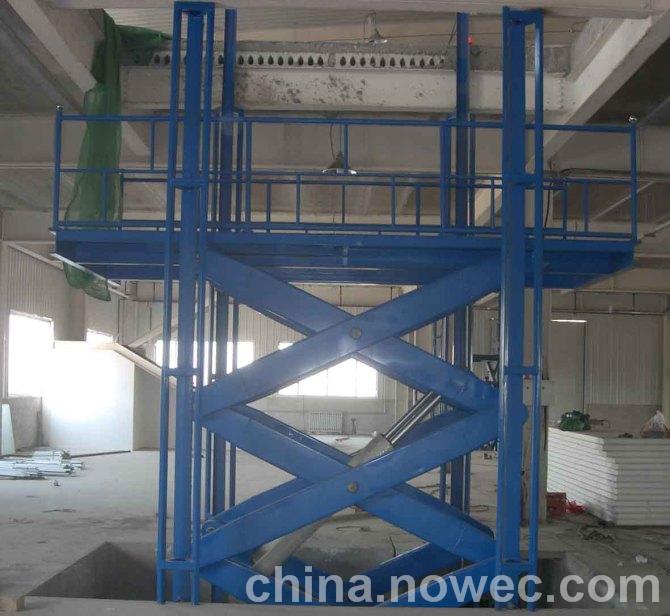升降台是一种垂直运送人或物的起重机械。也指在工厂、自动仓库等物流系统中进行垂直输送的设备,升降台上往往还装有各种平面输送设备,作为不同高度输送线的连接装置。一般采用液压驱动,故称液压升降台。除作为不同高度的货物输送外,广泛应用于高空的安装、维修等作业。升降台自由升降的特点已经广泛运用于市政维修,码头、物流中心货物运输,建筑装潢等,安装了汽车底盘、电瓶车底盘等能自由行走,工作高度空间也有所改变,具有重量轻、自行走、电启动、自支腿、操作简单、作业面大,能跨越障碍进行高空作业等360度自由旋转优点