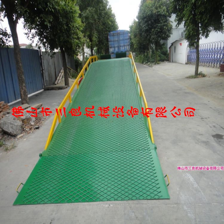 产品规格:根据承载能力产品分为:6、8、10、12吨登车桥,移动式登车桥是叉车配合使用的货物装卸辅助设备,可根据汽车车厢的高低调节高度,叉车可以直接通过本设备驶入车厢内部批量作业,设备