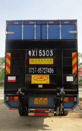 垂直式尾板:结构简单、安装简便、载重量较小。适用于各种车型。主要用于机场配餐车和气瓶运输车等。
