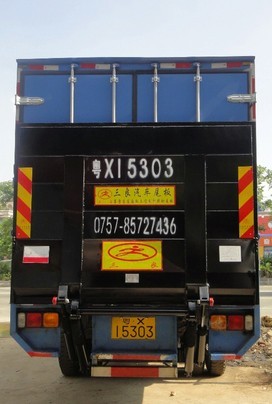 垂直式尾板:结构简单、安装简便、载重量较小。适用于各种车型。主要用于机场配餐车和气瓶运输车等。