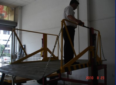 DCQ流动式液压登车桥是实现货物快速装卸的专用设备,它的自由升降可以适合任何车型就连1700mm的集装货柜车都可以轻松操作,配合手动液压搬运车进入车厢,即可实现货物的快速装卸。它使企业减少大量的劳力,提高工作效应,获取更大的经济效益。 流动式液压登车桥的特点:采用380V 电压液压驱动,操作方便运行可靠,用进口密封件,保障液压系统具有优良的密封性能。采用进口整体模块式液压站,密封性好,使用寿命长。采用花纹板有效的防止了滑动造成的意外伤害