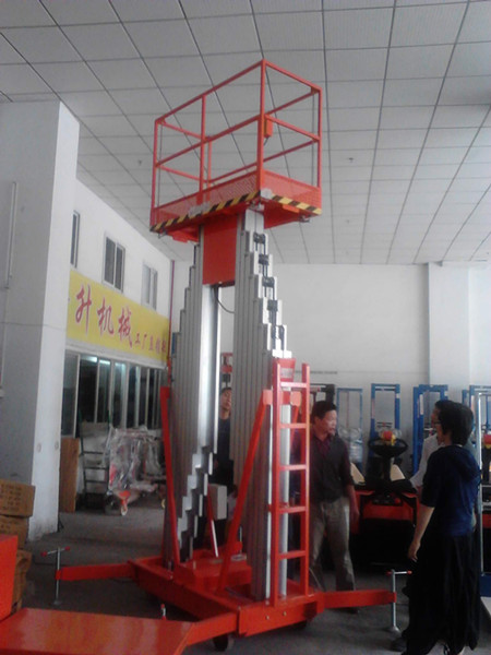 铝合金升降机采用高强度优质铝合金材料,具有造型美观、体积小、重量轻、运转灵活,推行方便。升降平稳、安全可靠等优点。它轻盈的外观,能在极小的空间内发挥最高的举升能力。广泛用于工厂、宾馆、餐厅、车站、影剧院、展览馆等场所,是保养机具、油漆装修、调换灯具、电器、清洁保养等用途的最佳安全伴侣