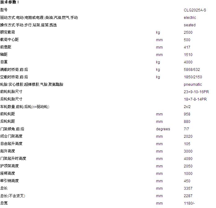 CLG2025A-S-CLG系列电动平衡重式叉车