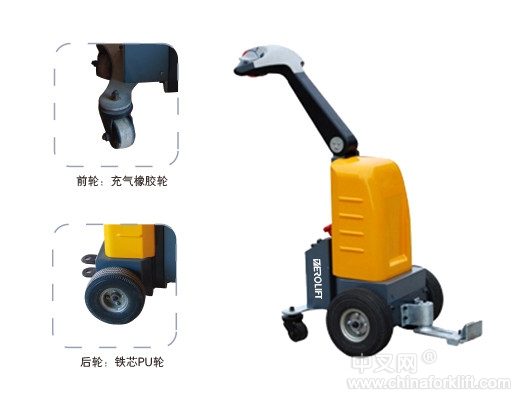 · 可适合各种场合的物流搬运、牵引,该迷你牵引车采用人机一体化的控制手柄,操作灵活,功能多。