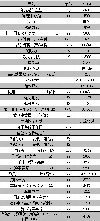 友佳FB系列FB35A平衡重式电动叉车(交流)