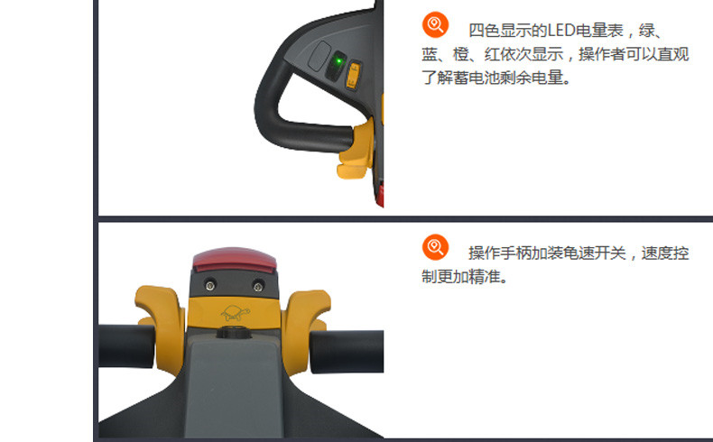 ◆钥匙开关和电量表集成在操作手柄上,操作更简便。