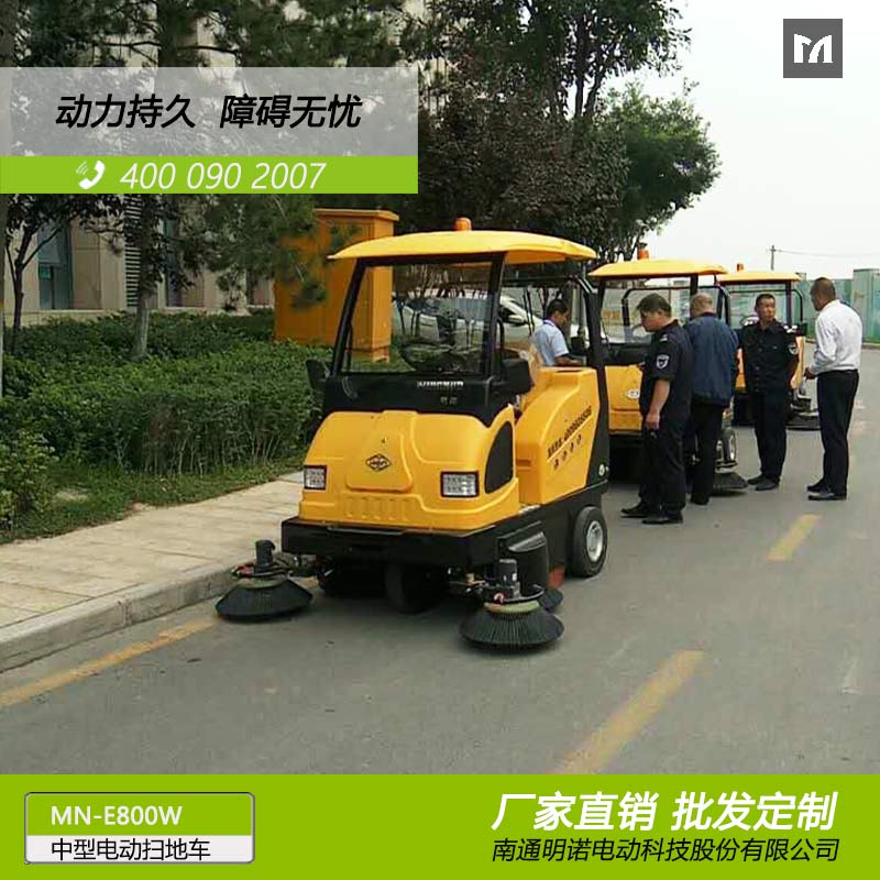 MN-E800W是一款中型电动驾驶式免维护扫地车,为吸尘、扫地、喷水相结合的自动清洁一体机。加大车轮,通过性高,适用于广场、景区、马路、公园、环卫、物业保洁、高校的室外清扫。