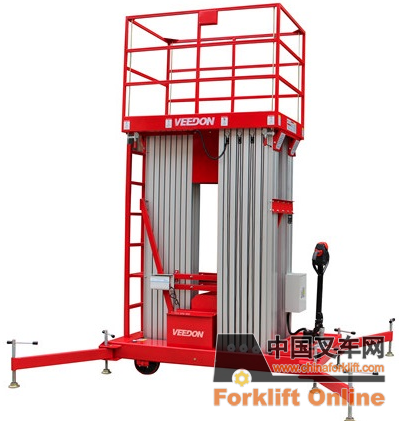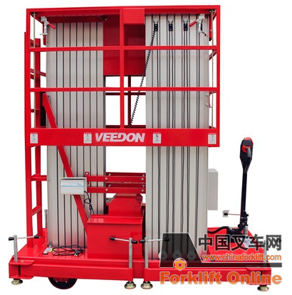 Veedon桅杆式高空作业升降平台采用铝合金材质机身,整机轻巧,方便移动、运输,工作平台上下方均安装操作按钮及应急停止按钮,轻盈的结构,精致的机身,适用于酒店、商场、礼堂、会场、议事厅、工业工厂等中高端场所,多桅柱分为三桅、四桅和六桅,分别因其而设计,为了满足客户对设备高度和作业稳定性的要求而设计,轻盈的外观设计能在极小的空间范围内发挥最高的举升能力