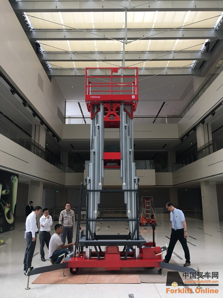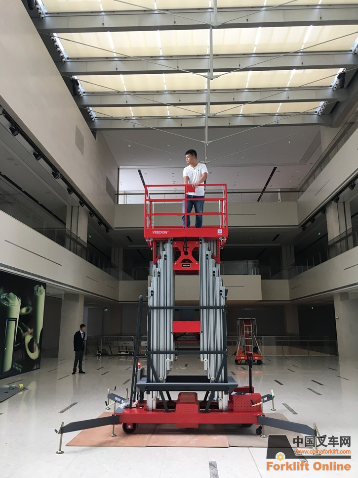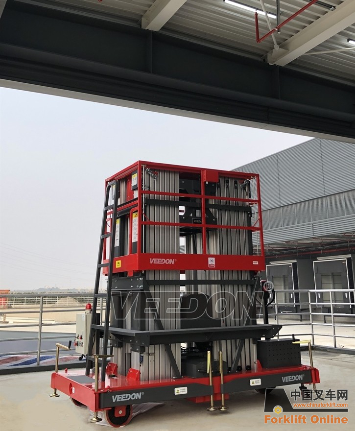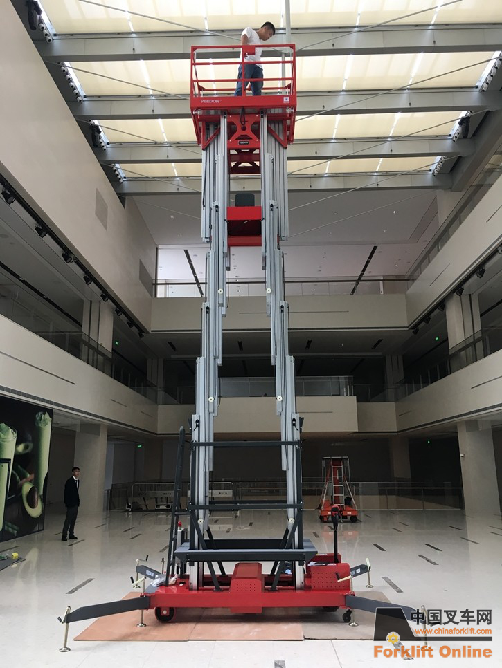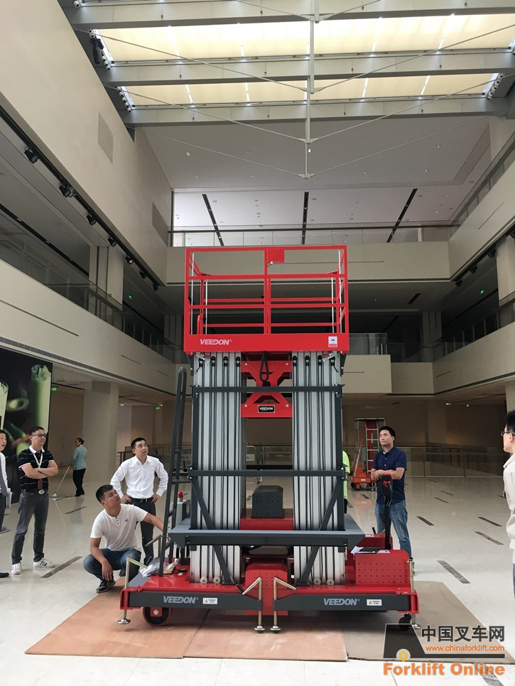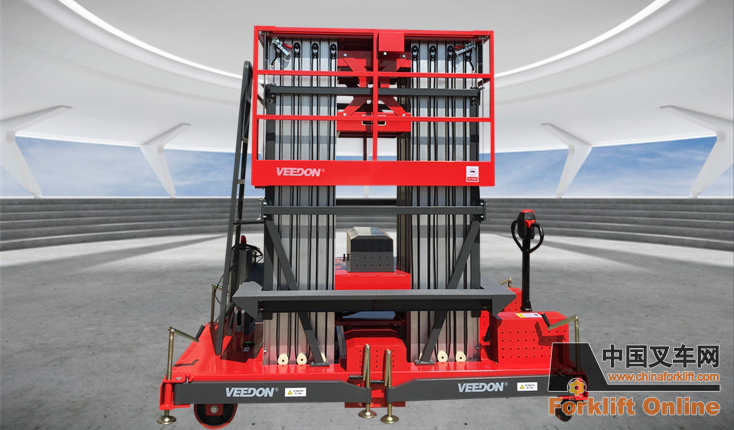 Veedon桅杆式高空作业升降平台采用铝合金材质机身,整机轻巧,方便移动、运输,工作平台上下方均安装操作按钮及应急停止按钮,轻盈的结构,精致的机身,适用于酒店、商场、礼堂、会场、议事厅、工业工厂等中高端场所,多桅柱分为三桅、四桅和六桅,分别因其而设计,为了满足客户对设备高度和作业稳定性的要求而设计,轻盈的外观设计能在极小的空间范围内发挥最高的举升能力